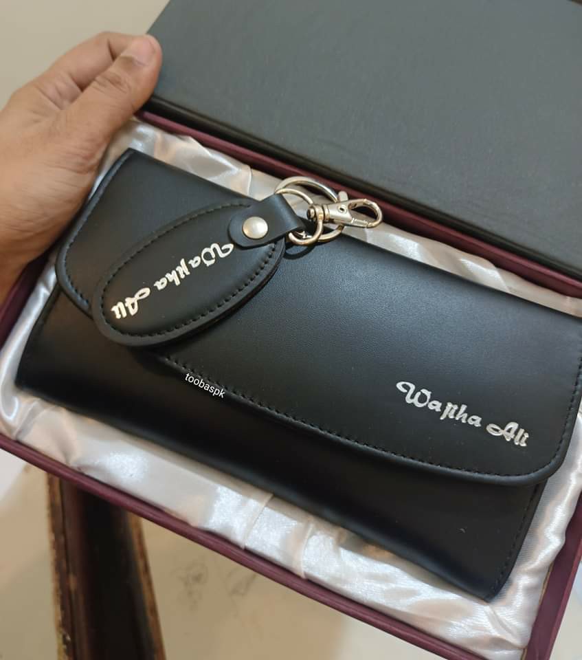 WOMEN LEATHER WALLET AND KEYCHAIN